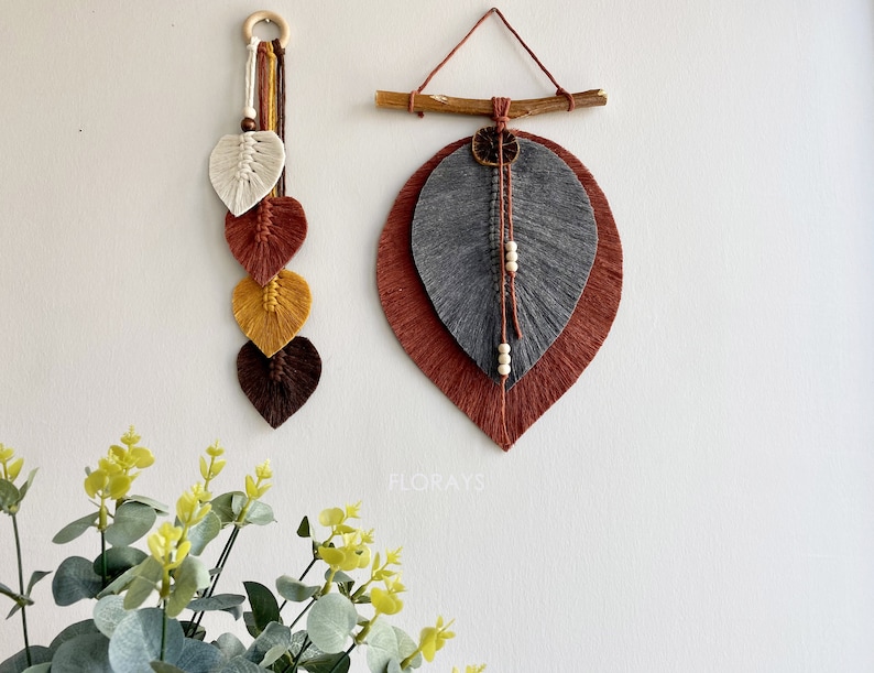 Este deslumbrante painel de folhas em macramê é uma obra de arte única, projetada para adicionar um toque de elegância e estilo a qualquer ambiente. Com uma altura total de 35 cm, este painel apresenta uma combinação harmoniosa de nós intricados e detalhes delicados, criando um padrão visualmente impressionante de folhas em macramê. Além disso, uma penca de folhas também em macramê, com 12 cm de altura cada, é suspensa elegantemente abaixo do painel, adicionando uma dimensão extra e movimento suave à peça. Com uma altura total da penca de 50 cm, esta adição cria uma sensação de fluidez e dinamismo, transformando o espaço em um ambiente acolhedor e cheio de personalidade. Este painel de folhas em macramê é uma escolha perfeita para quem busca uma decoração única e sofisticada, que certamente se destacará e impressionará a todos os visitantes